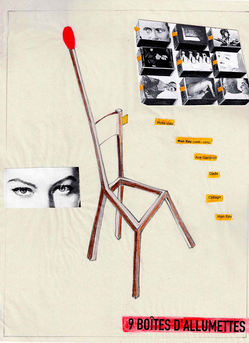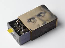 Vers la fin de sa vie, Man Ray avait pris pour habitude de ranger de menus objets dans des boîtes d’allumettes qu’il recouvrait de portraits photographiques de ses amis. A l’intérieur, des clefs miniatures dont on ne sait ce qu’elles pouvaient bien ouvrir.