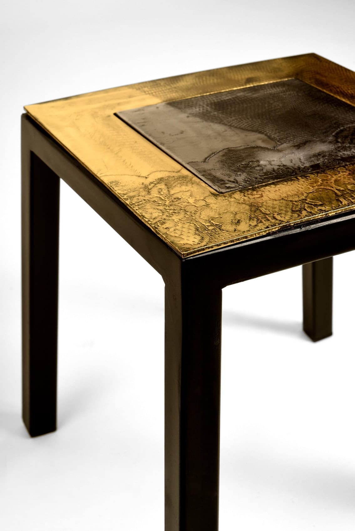 Accueil / Variations / SMOKER mixSMOKER mix Accueil / Variations / SMOKER mixSMOKER mix Tout petit tabouret à disposer autours d’une table basse ou d’une cheminée. Un napperon, une maille, une gaze servent de pochoirs pour décorer la matière qui se révèle après un bain d’acide.