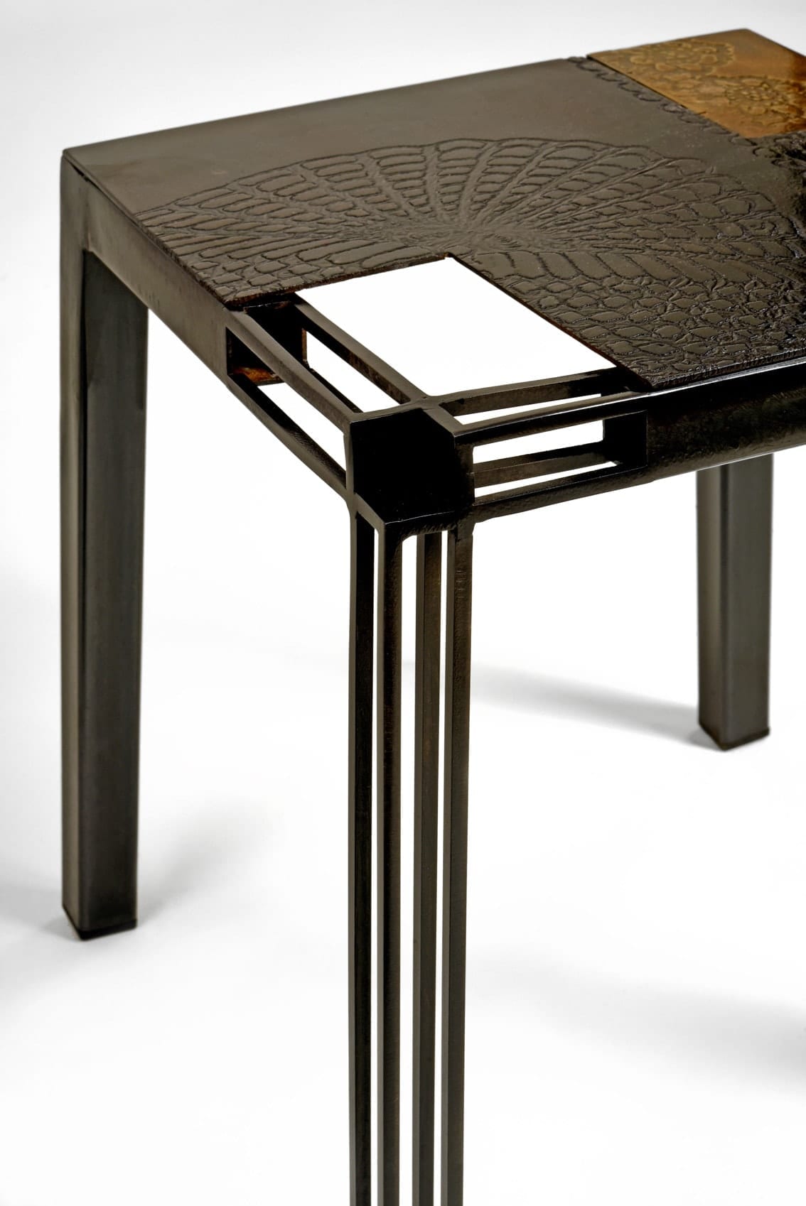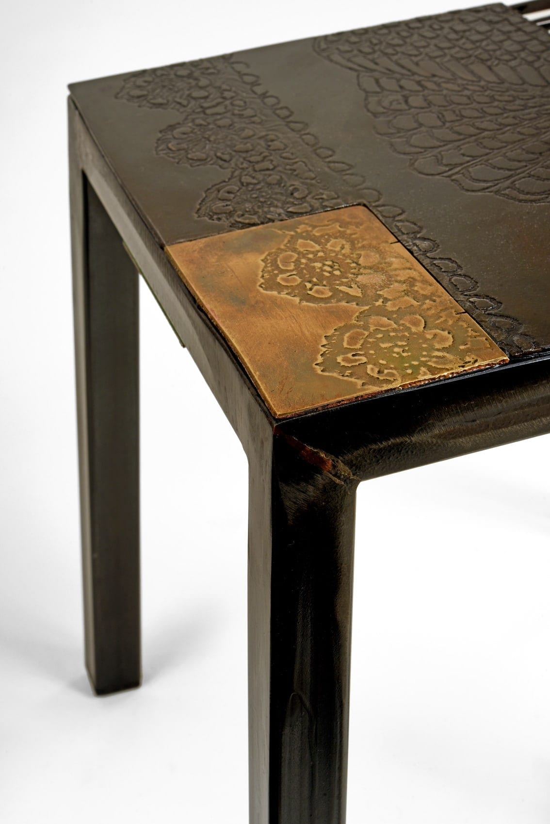 Accueil / Variations / hole SKELETON mixhole SKELETON mix Accueil / Variations / hole SKELETON mixhole SKELETON mix Tout petit tabouret à disposer autours d’une table basse ou d’une cheminée. Un napperon, une maille, une gaze servent de pochoirs pour décorer la matière qui se révèle après un bain d’acide.